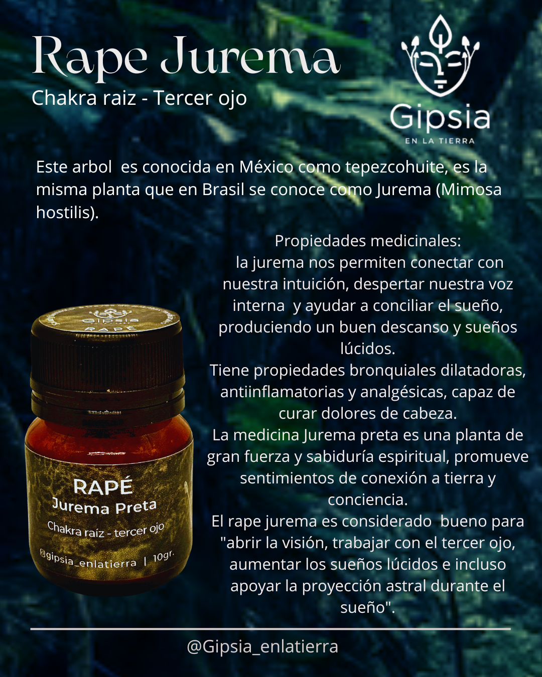 el rape jurema es considerado bueno para “abrir la visión, trabajar con el tercer ojo, aumentar los sueños lúcidos e incluso apoyar la proyección astral durante el sueño”.